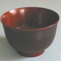 木目が美しい上質のけやきを使い、摺り(すり)漆という、漆を布で木地に摺りこんで木目を際立たせる塗りにしています。側面には千筋という轆轤(ろくろ)挽きの技を施しています。
