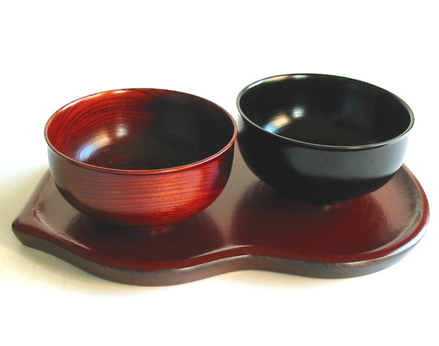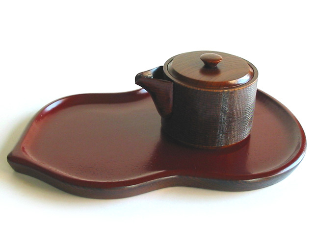 ひさごの形をした木製漆塗りのお盆です。お茶やお椀などを運ぶのに手頃な大きさです。