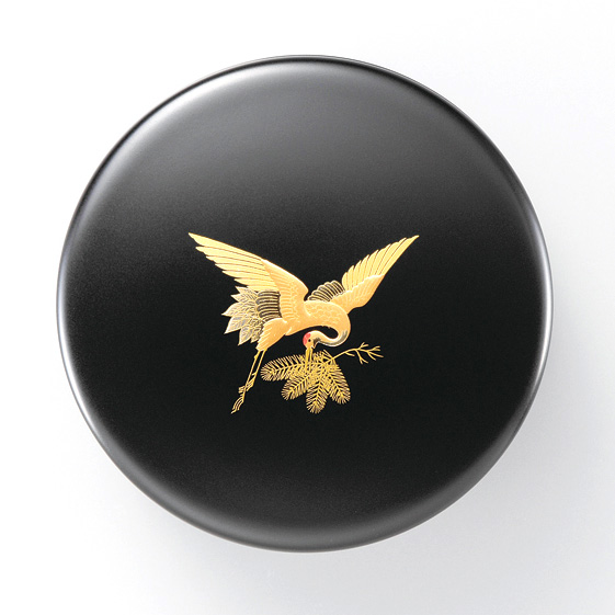 縁起のいい松と鶴の黒塗りで、迎春のハレの日にふさわしいお重です。