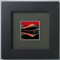 朝焼けと水面に映り込む逆さ富士が印象的な逸品です。