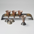 木製漆塗りのアーチ形のカップの置き台と陶器のカップのセットです。