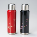朱と黒の漆塗りに、沈金の桜が美しいスリムなボトルです。