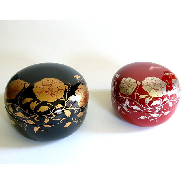左は、ひとまわり大きく黒色に金の華唐草のボンボニエール