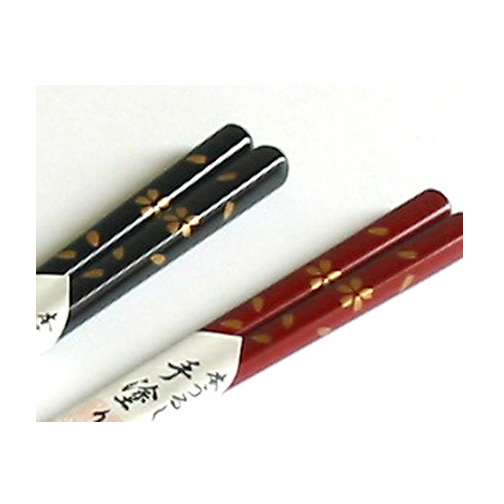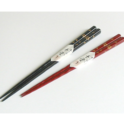 桜の蒔絵がなんとも美しい、漆塗りの黒朱ペアの夫婦箸です。こんな華やかなお箸を使うと、毎日自然と気持ちが華やいだ気分になることでしょう。