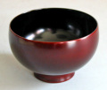 丸みを帯びた形が、なんともかわいらしく人気の木製漆塗りの汁椀です。