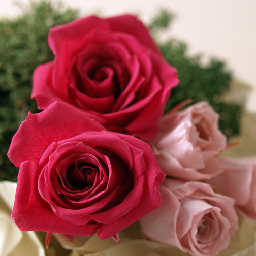 独特のフォルムが魅力の漆塗りの小鉢に、華やかなバラを組み合わせて、モダンなあしらいになっています。