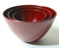 スタイリッシュなフォルムのボウルが、3つで1つの入れ子になった、漆塗りの三つ組ボウルです。